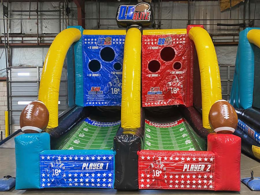 Want to be part of Commanders history? While this bounce was at FedEx field during the Washington Football team name changing to the Commanders. Everyone loves playing quarterback Well lets pratices and have fun at the same time. This Football interactive is huge, It's a towering 18ft tall. Adults and kids will have hours of fun playing with this inflatable. We also have a basketball interactive that is very similar to the football interactive.